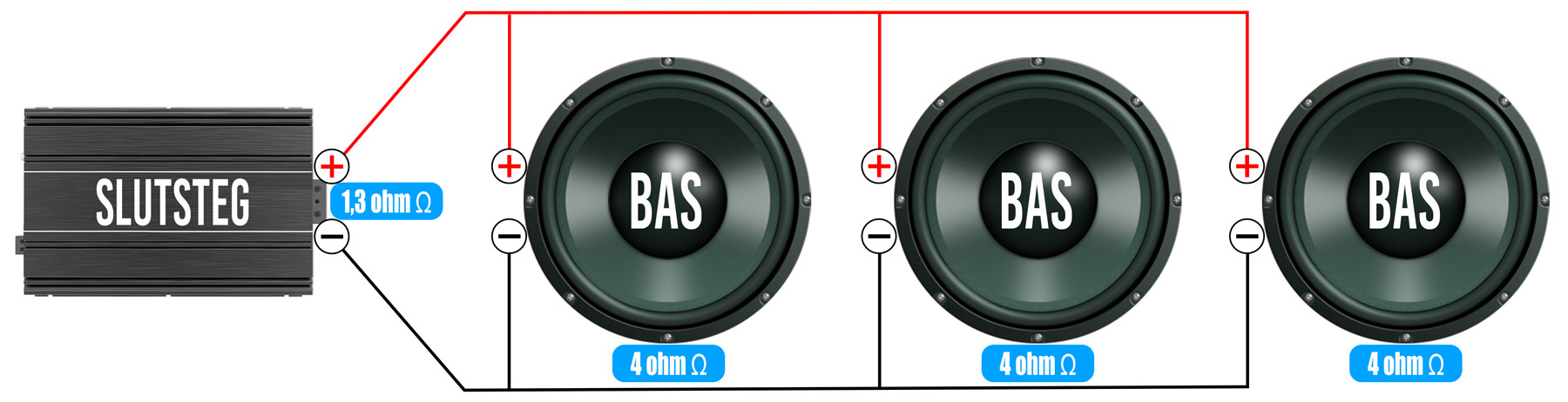 | Effekttålighet RMS | 3x 150W |