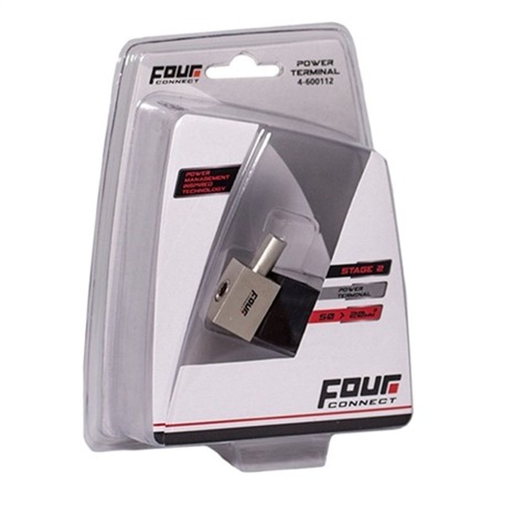 4Connect 4-600112 är en slutstegsterminal som löser problem med för tjocka kablar till slutsteget, med denna kan du koppla en 50mm2 direkt till 20mm anslutningen på slutsteget!