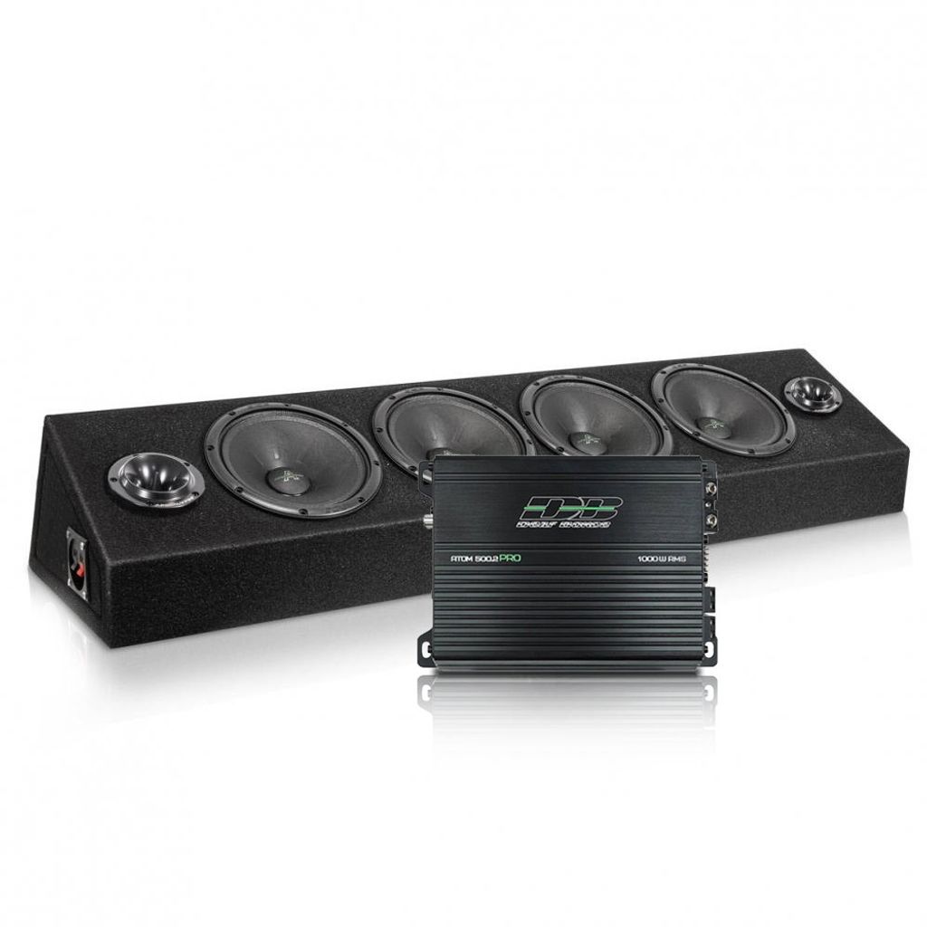 En riktig raggarplanka bestående av högtalare och slutsteg från Deaf Bonce hårda Apocalypse serie. Med Arnold midbasar och Apocalypse diskanter spelar du ifrån det mesta. Hela plankan drivs av det lilla men mycket kraftfulla slutsteget Atom 500.2 PRO.