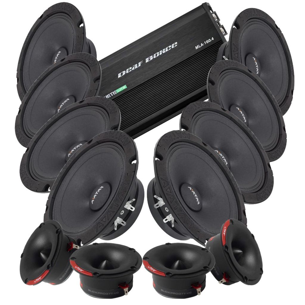 Ett kraftfullt standard paket för den som vill spela enormt högt med små pengar. med 8st Avatar MTU-61LE 6.5" midbasar ihop med Vibe diskanter. Slutsteget är ett fyrkanaligt med inbyggda HPF.