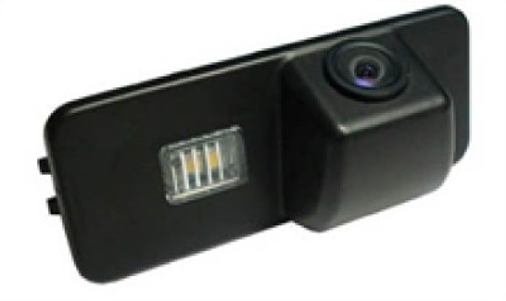 Liten diskret backkamera som ersätter en av skyltbelysningens lampor, självklart har den integrerad lampa för skyltbelysning.