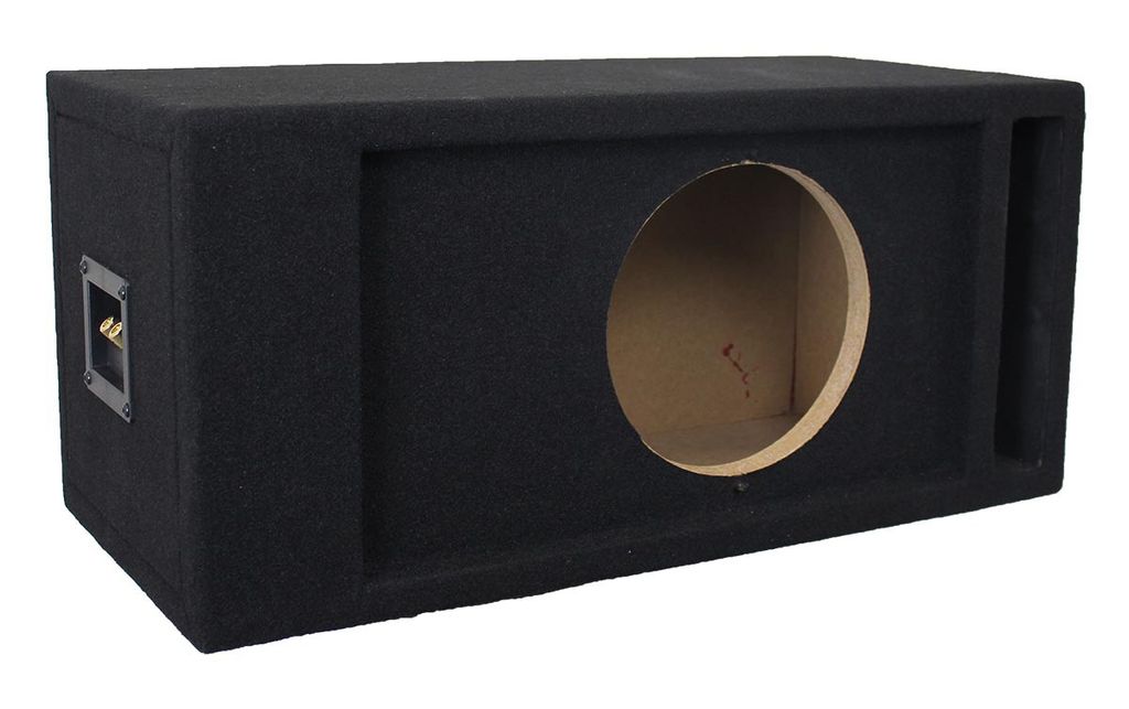 Basreflexlåda klädd i svart matta med port utan element för en enkel 8''-bas.