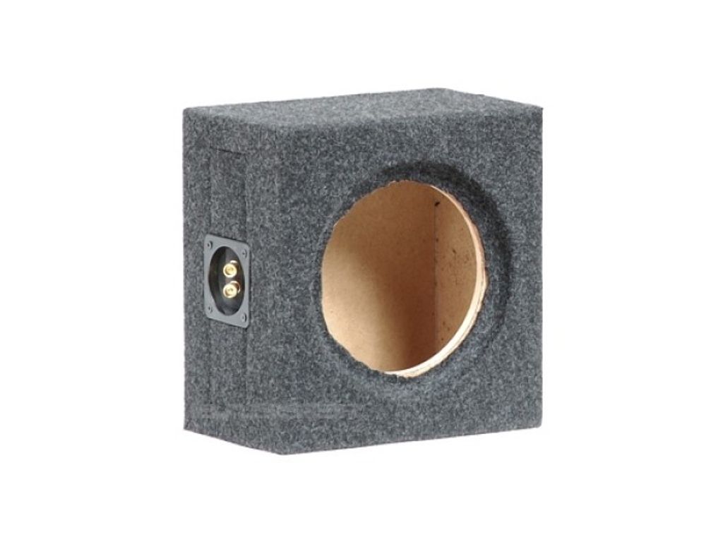 Färdig baslåda tillverkad utav MDF. Klädd i slitstarkt grått tyg.