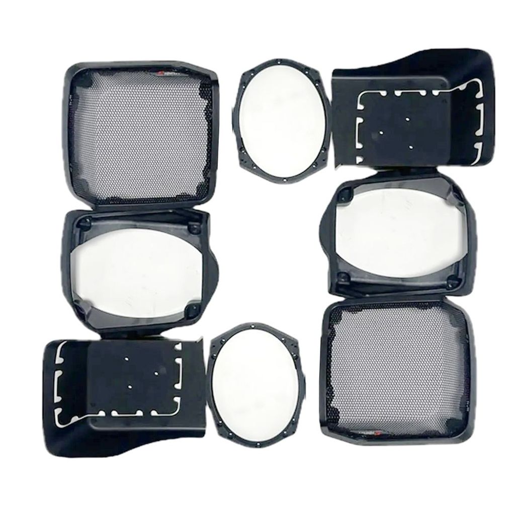 RPM LID KIT är ett skräddarsytt monteringskit utvecklat för att passa Harley Davidson®-modeller från 1998 till 2013. Kitet gör det möjligt att montera 6x9"-högtalare direkt i sidoluckorna och är designat för enkel och snygg integration i motorcykelns befintliga konstruktion.