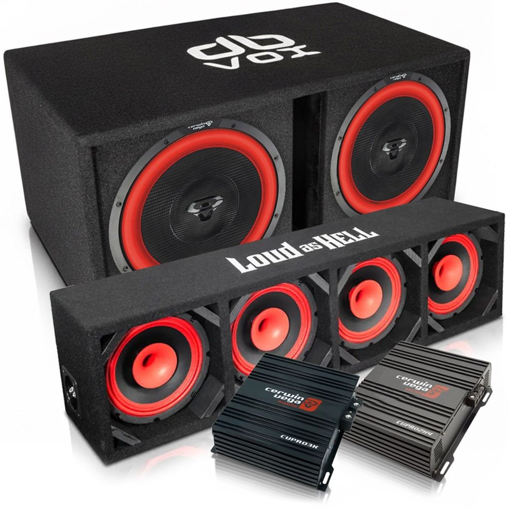 - Två Cerwin-Vega VEGA 12" subwoofers med 1200W RMS vardera