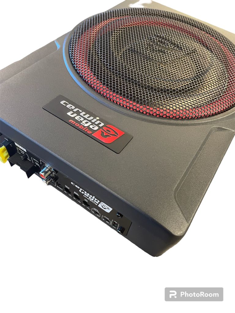 CERWIN-VEGA MOBILE:s sortiment av prisbelönta VEGA ACTIVE POWERED Subwoofer ger den ultimata allt-i-ett-lösningen för bas. Med en helt integrerad förstärkare innesluten i en gjuten aluminiumvärmesänka, tillsammans med subwoofern, uppnås en enkel plug-and-play-funktion. De kompakta drivenheterna ger en skräddarsydd look för de flesta fordon. Om du vill lägga till lite bas i ditt befintliga ljudsystem är denna kompakta subwoofer perfekt för applikationer med begränsat utrymme. Den passar under säten, monterad eller placerad i bagageutrymmet utan att ta mycket plats. Kan användas med original- och eftermarknadsradio.