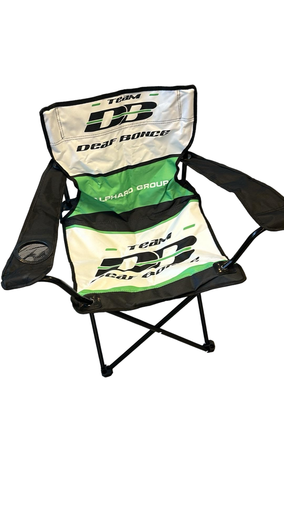 Ihopfällbar stol i robust polyester för fritid, strand och mugg hållare med passande väska. Max belastning 100 kg.