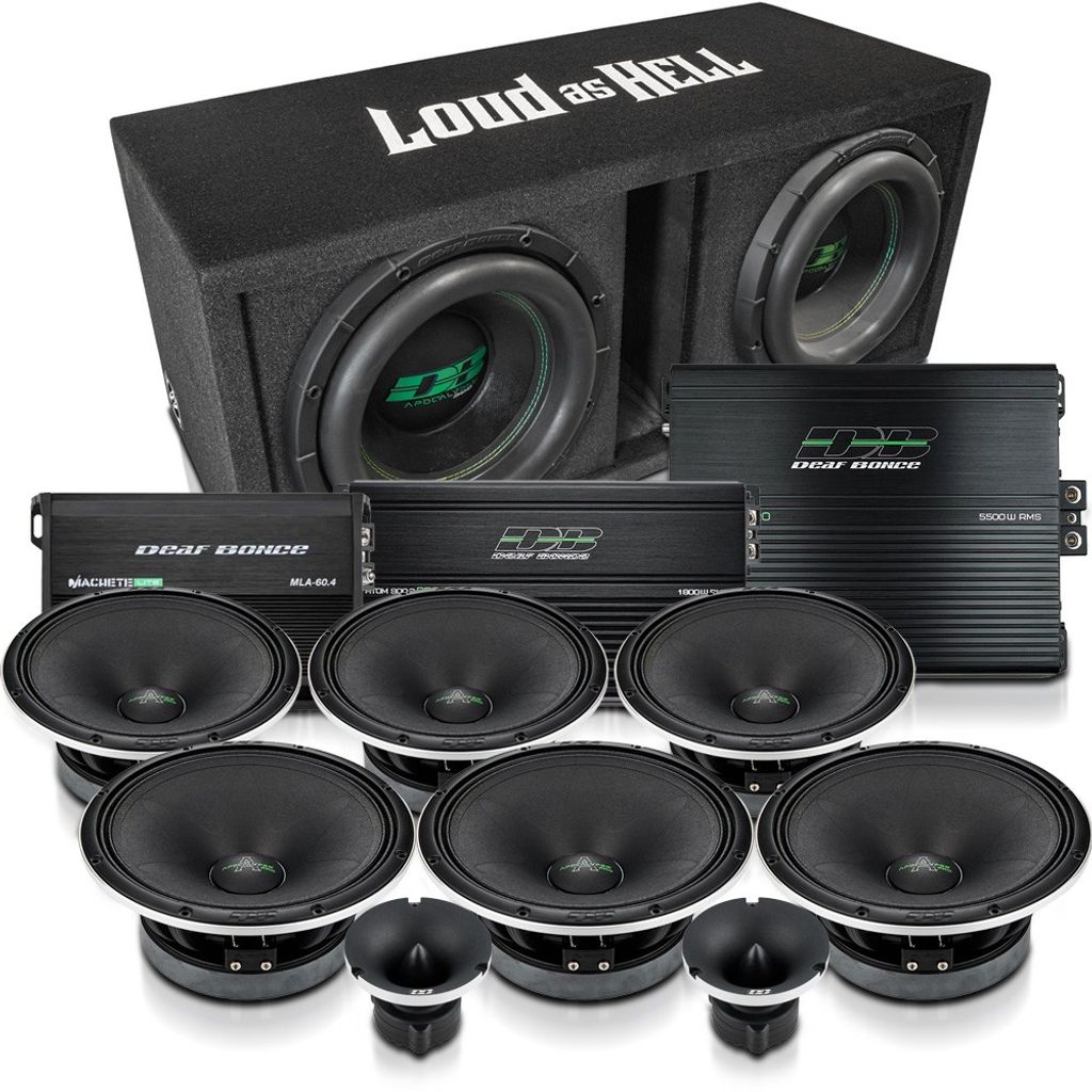 Det här paketet är noggrant sammansatt för att ge dig en komplett ljudupplevelse från djupaste bas till kristallklara diskanttoner. Med förstärkare och högtalare från Deaf Bonce och Apocalypse-serien är varje komponent vald för att leverera extrem effekt, hög verkningsgrad och kompromisslös hållbarhet.