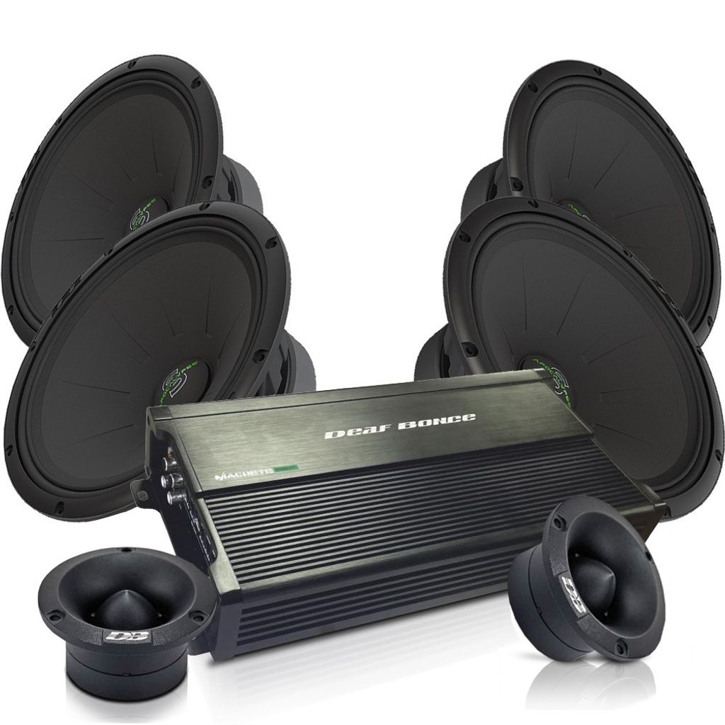 Komplett kraftpaket från DeafBonce med 4 st 8" midbasar, 2 st diskanter och ett 2-kanals slutsteg.