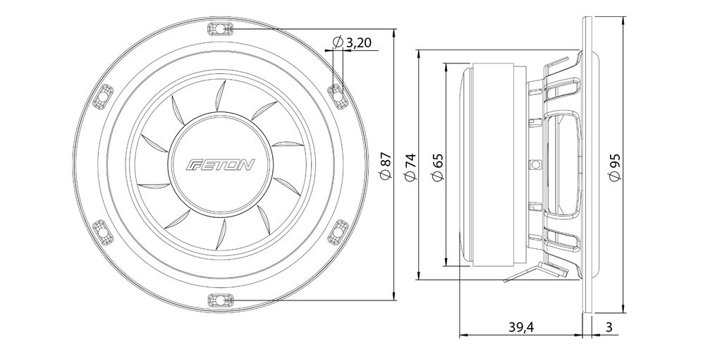 | Monteringshål | 74mm |