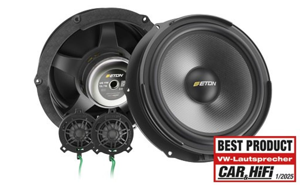 - 200 mm (8") bas-/mellanregisterelement med sandwichkoner av glasfiberpapper, långslagiga surroundhögtalare, elastiska talspolar, kraftfulla ferritmagneter med stor kärnborrning, glasfiberförstärkta plug & play-polyamidkorgar med tätningstejp och fordonsspecifika anslutningsterminaler