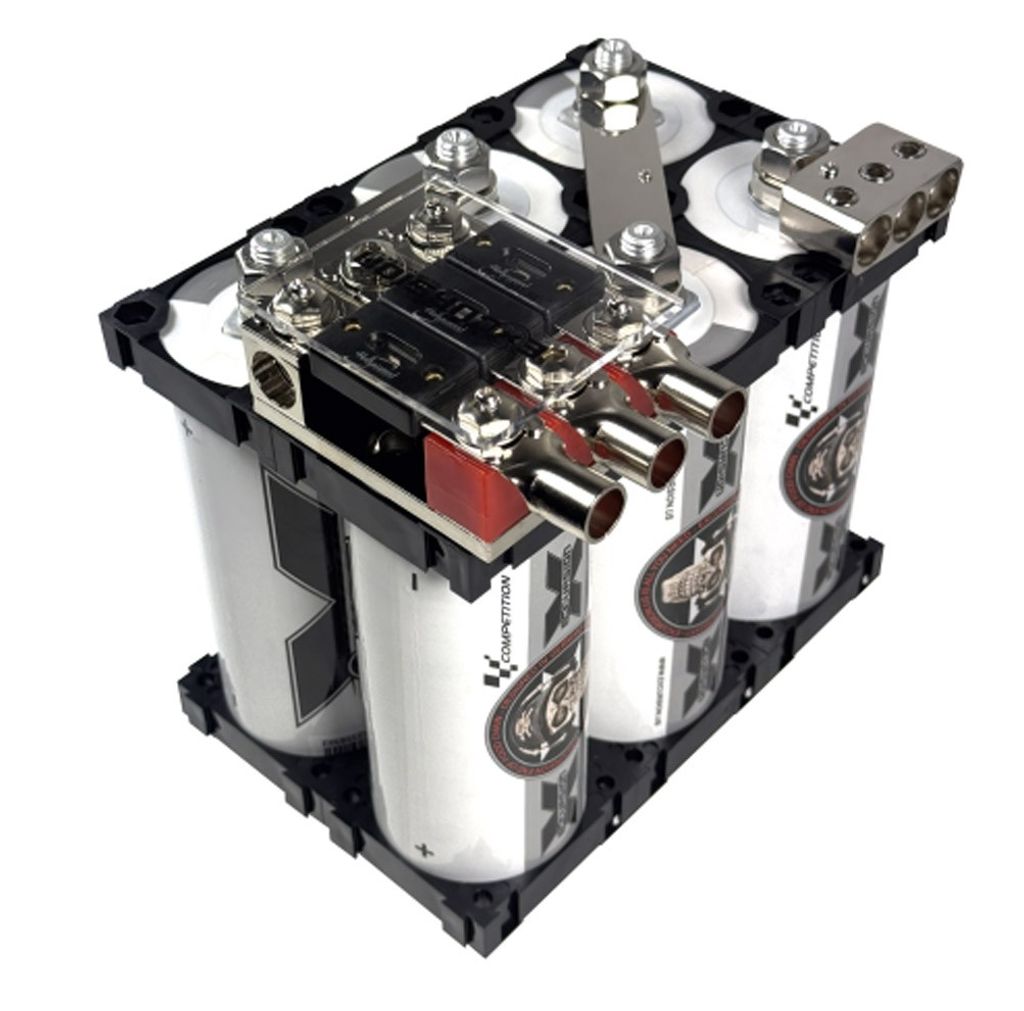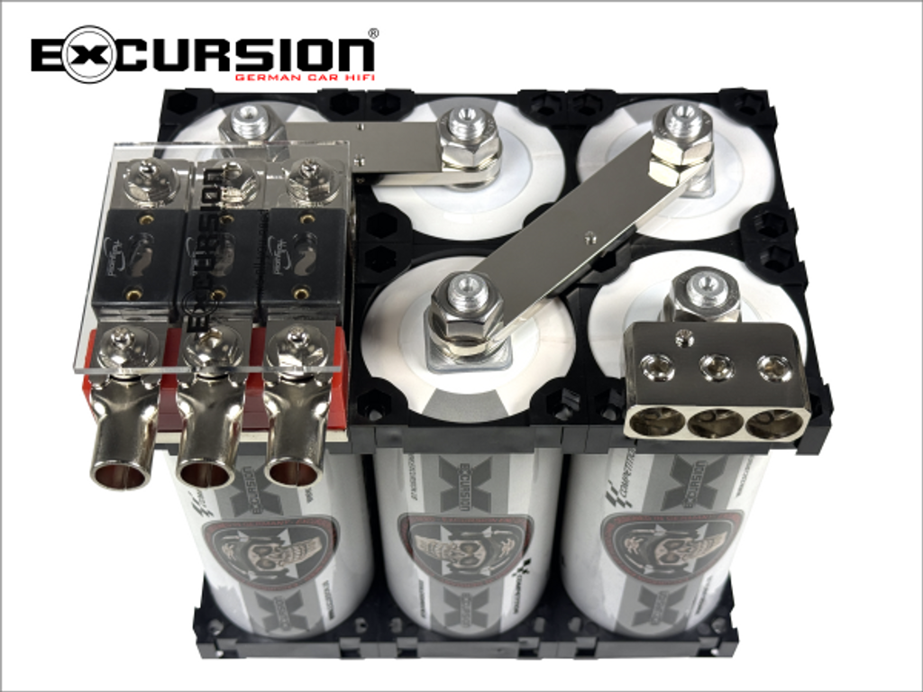 Dessa högkvalitativa, industriellt tillverkade och nu tillgängliga monteringssatser för enkla, dubbla, trippel- och fyrdubbel LTO-banker. En särskild innovation här är den direktmonterade och ytterligare utbyggbara trippel-ANL-säkringshållaren och en trippelfördelningsterminal med ett M12-hål för LTO-montering. Samma säkringshållare är fortfarande lämplig för de flesta bilstereobatterier på marknaden eller finns även tillgänglig individuellt som en standard inbyggnadsversion.