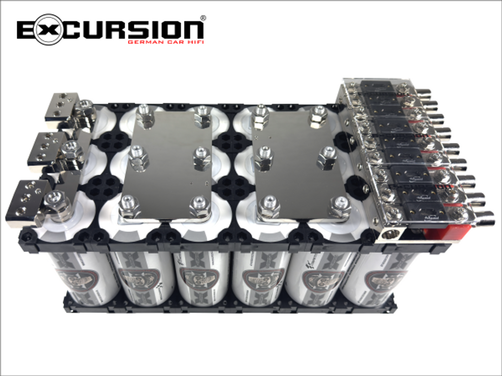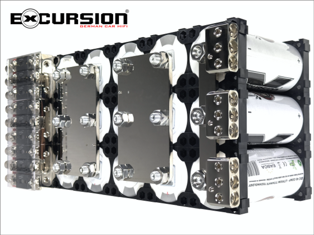 Dessa högkvalitativa, industriellt tillverkade och nu tillgängliga monteringssatser för enkla, dubbla, trippel- och fyrdubbel LTO-banker. En särskild innovation här är den direktmonterade och ytterligare utbyggbara trippel-ANL-säkringshållaren och en trippelfördelningsterminal med ett M12-hål för LTO-montering. Samma säkringshållare är fortfarande lämplig för de flesta bilstereobatterier på marknaden eller finns även tillgänglig individuellt som en standard inbyggnadsversion.