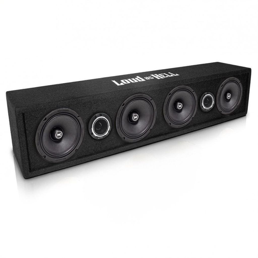 LOUD AS HELL 4x6.5" Raggarplanka v2 - En sluten planka med 4x6.5" midbas-högtalare och plats för 2 diskanter, byggd av robust MDF, med en terminal på baksidan. Detta hölje levereras förskuret för följande diskanter, vilket eliminerar behovet av ytterligare hålbearbetning.