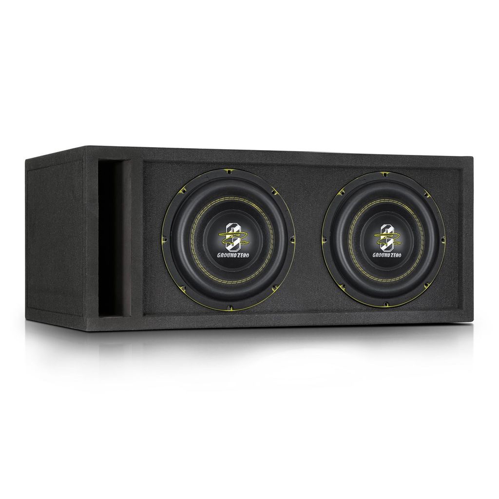 Paketpris på dubbla 8" basar från Ground Zero ihop med en kraftig låda av MDF.