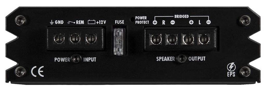 För anslutningar finns RCA-ingångar och utgångar via en wire harness. Den har också högnivåingångar med EPS (Enhanced Power Supply) för enkel anslutning till OEM (Original Equipment Manufacturer) stereo. Auto Turn On-funktionen möjliggör automatisk påslagning när den detekterar ljudsignal.