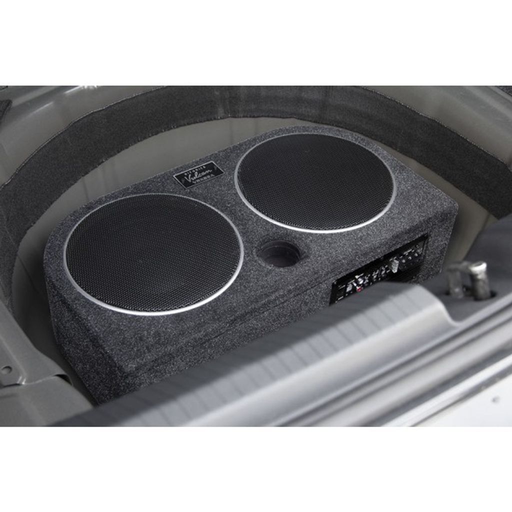 Det nya VULCAN VRX82A är ett aktivt system som är platt byggt med rundade baksida vilket gör att det kan installeras i reservhjulsutrymmet eller i upprätt läge genom att montera de medföljande gummifötterna i botten av baslådan. Höjdpunkten i det nya VULCAN-systemet är den kvasi-resonerande passiva radiatorn, som förutom den aktivt drivna bashögtalaren säkerställer den extra luftförskjutning som är viktig för låga frekvenser.