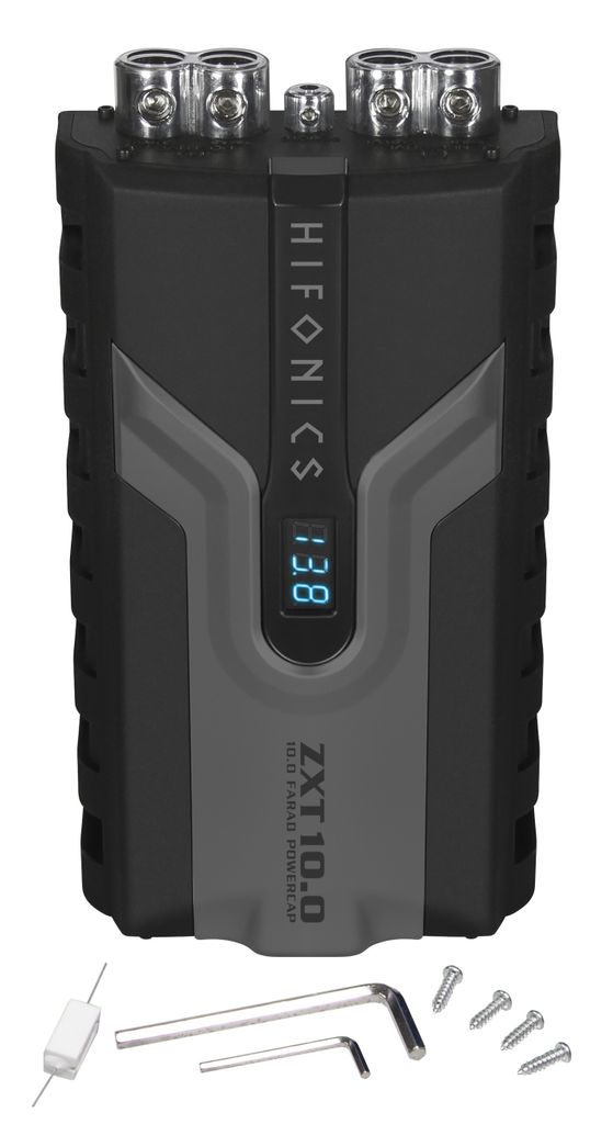 ZEUS EXTREME ZXT- kondensatorer levererar den lagrade extra kraften precis när subwooferförstärkaren OMEDELBART behöver mycket energi för den tunga basen. Energin som frigörs laddas sedan upp från batteriet i strömlocket för nästa attack. Kondensatorn kan därför buffra och jämna ut spänningstoppar genom att absorbera överskottsenergi och frigöra den igen vid behov.