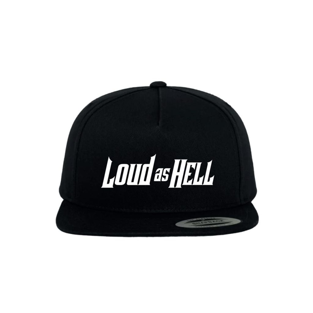 Beskrivning av LOUD AS HELL keps Svart snapback keps Vitt tryck med LOUD AS HELL logotyp på framsidan.