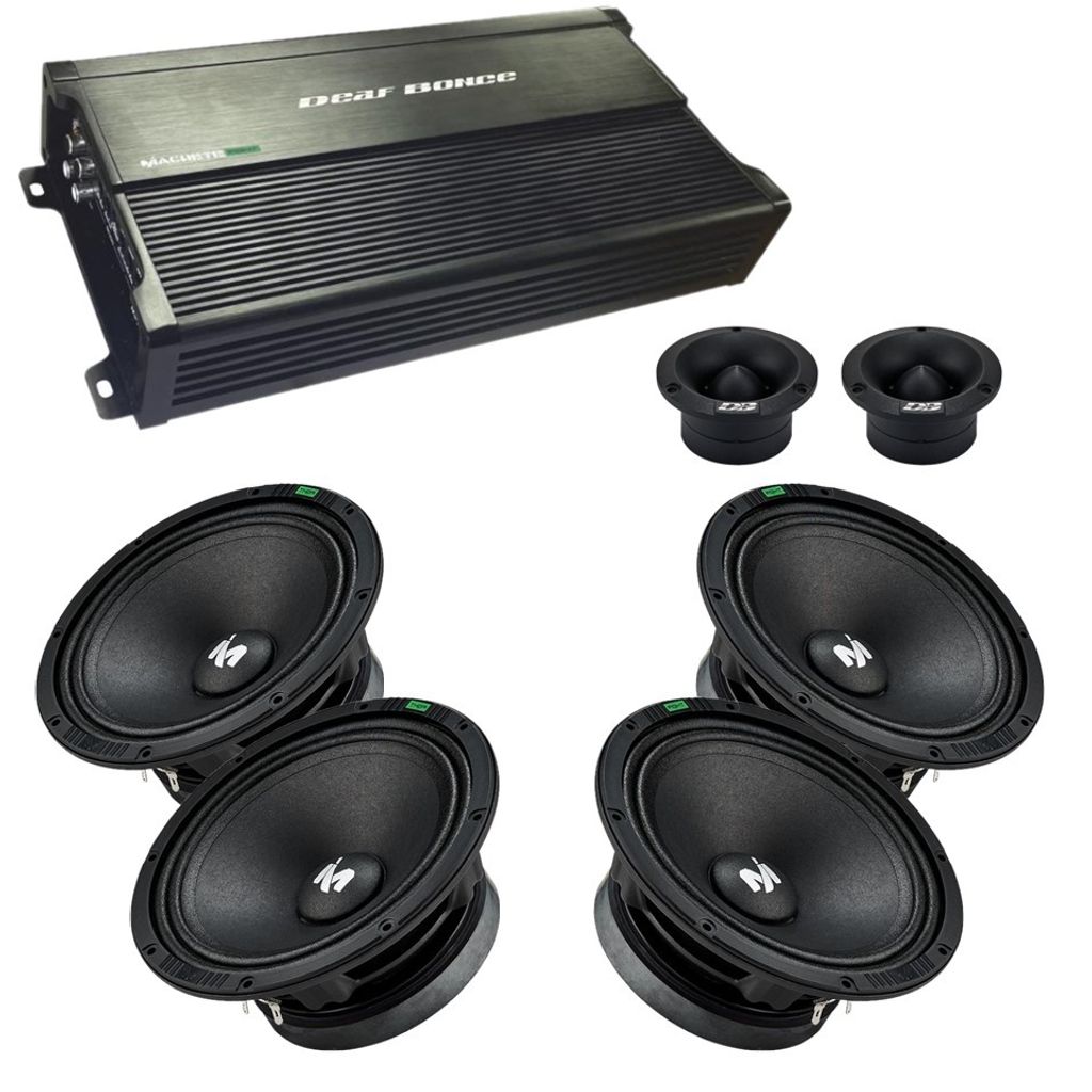 2 par Machete Fight 60 Midbass, 1 par Deaf Bonce AT-32 Diskanter och slutsteg