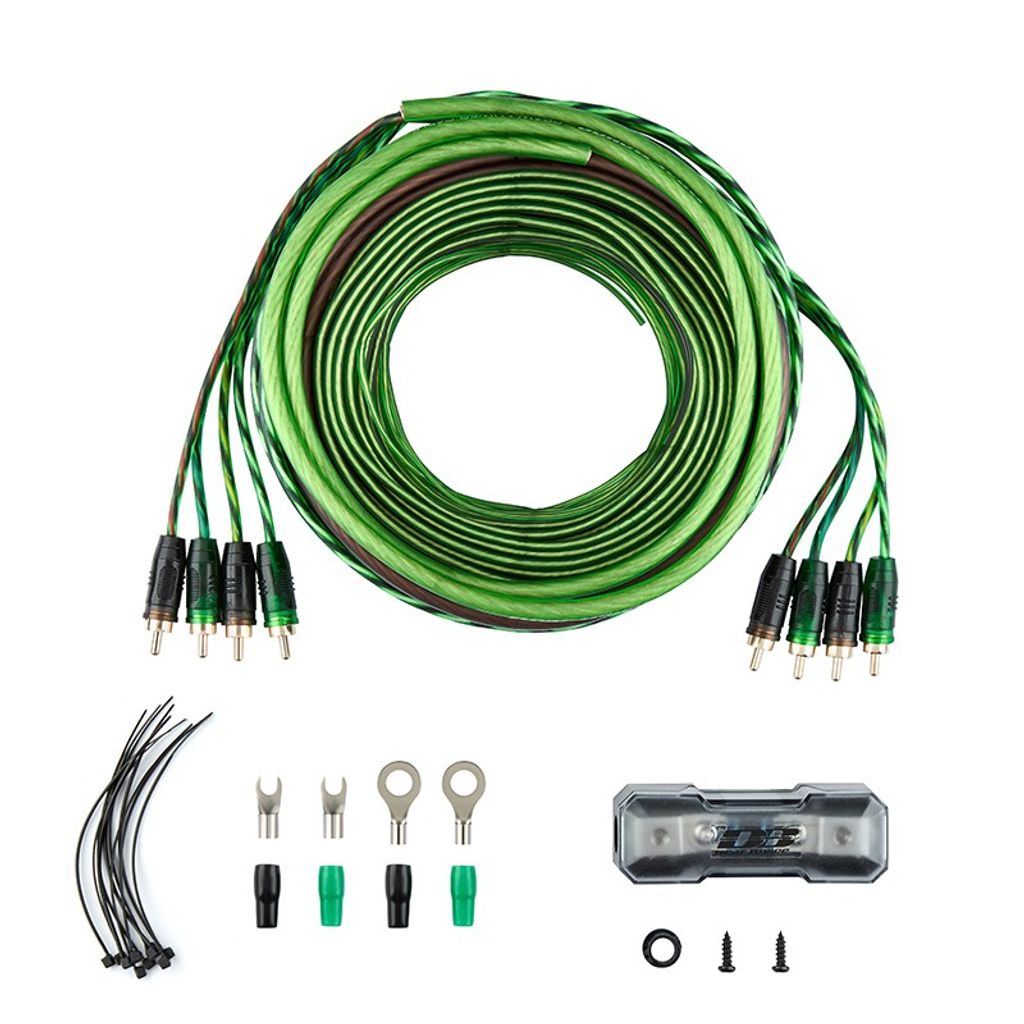 Ett komplett kabelit för fyra kanaler med säkringshållare och tillbehör