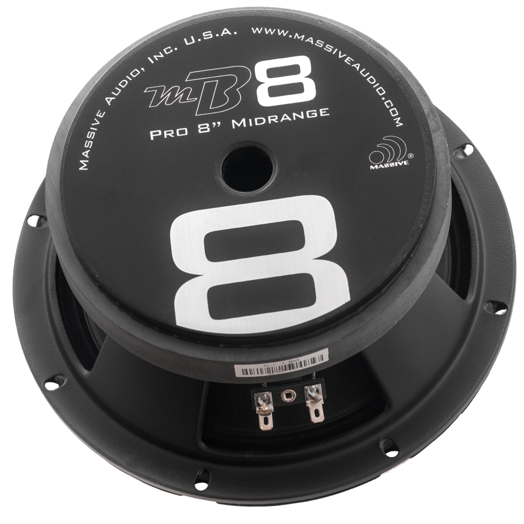 Massive Audio MB8 är en extremt kraftig 8"midbas på hela 175W rms eller 300Max musik. Frekvensomfånget är hela 85-8000Hz så den klarar den perfekta snärten i midbasen. Känsligheten är hela 97dB/1W