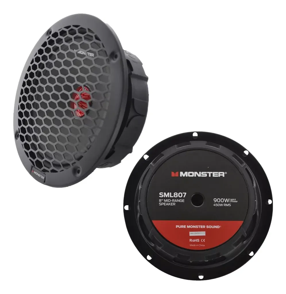 Monster Audio SML807 är en högpresterande 8-tums midrange-högtalare, konstruerad för kraftfullt ljud och enastående klarhet. Med en RMS-effekt på 450W och en maxeffekt på 900W, levererar denna högtalare en imponerande ljudupplevelse, vilket gör den till ett utmärkt val för både bilstereobyggare och professionella ljudsystem.