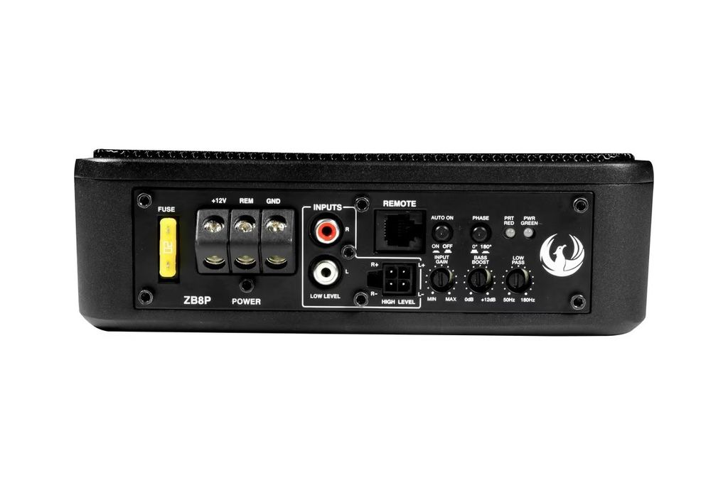 Bashögtalaren kommer med en snabbkoppling för en snabb och enkel installation. ZB8P kommer med alla funktioner som behövs som lågpassfilter, justerbar faskontroll, automatisk påslagning och basförstärkning. Enheten kommer också med en 5m fjärrkontroll för att justera basnivån från förarsätet.