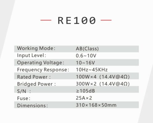 Nyhet Rebec Rebec RE100 4 590 kr 4-kanal Steg klass AB Läs mer 31269 Rebec Liknande produkter Rebec Rebec RS28 Golden 31564 High end Diskant svart Guld Logga 3 395 kr 2 Par Nyhet Rebec Rebec RT6 3ohm 31515 6,5" kit 3ohm 1 495 kr 30 + Par Nyhet Rebec Rebec RS28N 31559 High end Diskant för att passa i OEM installationer 2 990 kr 10 + Par Nyhet Rebec Rebec RPX-B680 31560 DSP med klass AB förstärkare 2 490 kr 1 Styck Nyhet Rebec Rebec RS200 31563 Premium SQL 8" Midbas 5 490 kr 10 + Par Nyhet Rebec Rebec EX28 Black 32006 Diskant i EX serien i Svart 4 590 kr 2 Par Nyhet Beskrivning av Rebec RE100 Relaterade kategorier 4 kanaler Rebec