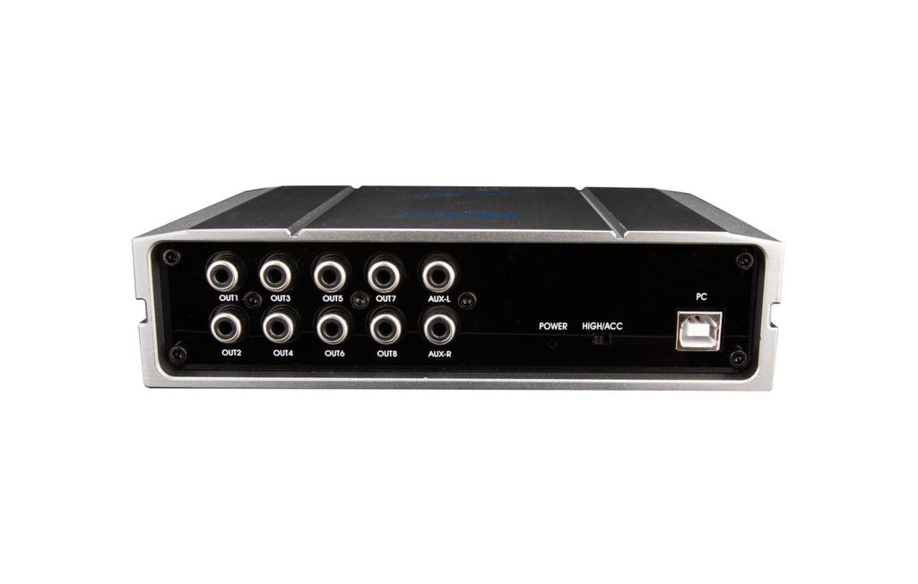 Rebec Rpx-B680 DSP med förstärkare har 4 högnivåingångar och 2 lågnivå ingångar, 4 x 65W+2x50W max inbyggd förstärkare klass A/B, optisk och koaxial digitalingång,Aux-ingång, inbyggd Bluetooth och hela 8 kanaler RCA-utgångar. Man kan välja att stänga av den inbyggda förstärkaren och bara använda den som DSP.