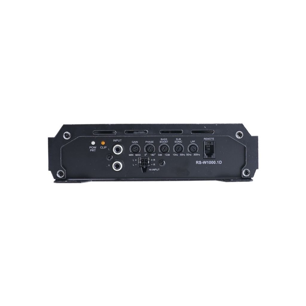 RS-W1000.1D arbetar med en driftspänning på 9–15 V och har en ingångskänslighet på 0,2–6 V, vilket gör det kompatibelt med både originalstereo och eftermarknadsenheter. Den har dessutom högnivåingång för smidig anslutning utan linjeomvandlare. Tre 40A-säkringar säkerställer stabil strömförsörjning även vid tung belastning, medan ett signal/brusförhållande på >90 dB garanterar ren och tydlig återgivning utan störningar.