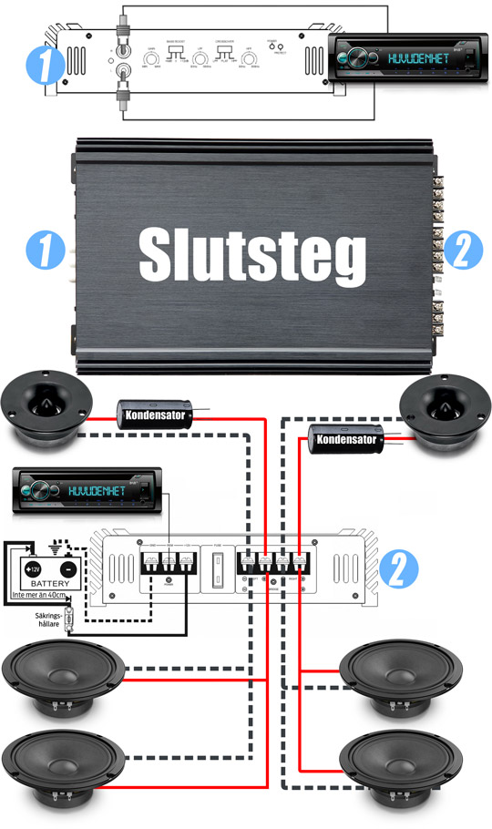 Instegskit med 4x6.5 Raggarplanka, 4 midbasar, 2 diskanter och ett matchande slutsteg.