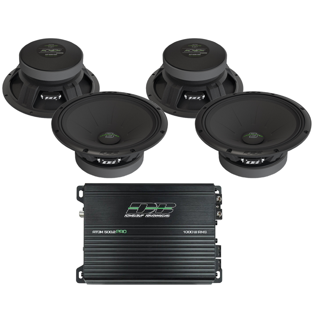 Paketet innehåller 4st DeafBonce Apocalypse Sylvester 8" midbasar och ett AAB-500.2 slutsteg.