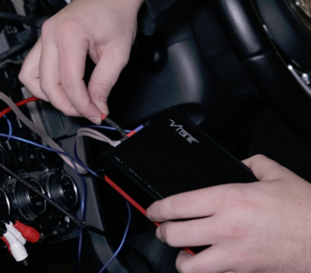 För att komma åt högnivåsignal är det bara att klämma på en utgående högtalarkabel med den