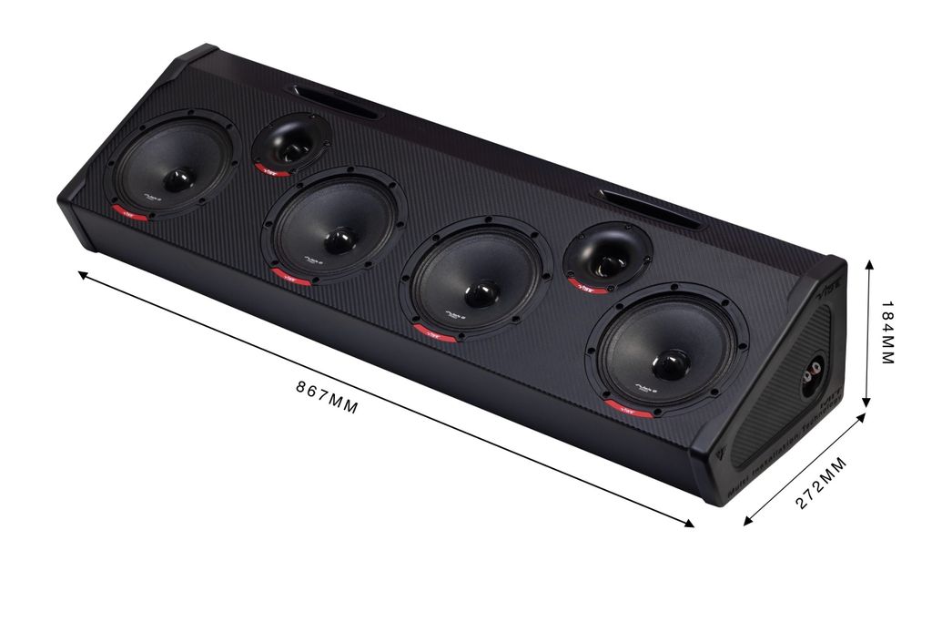 Med en peakeffekt på 1950W och en RMS-effekt på 650W har denna raggarplanka tillräckligt med kraft för att leverera imponerande ljudtryck. Impedansen är 2Ω för stereoanvändning. Måtten på lådan är 184 mm i höjd, 867 mm i bredd och 272 mm i djup, vilket gör den relativt kompakt och enkel att installera i de flesta fordon.