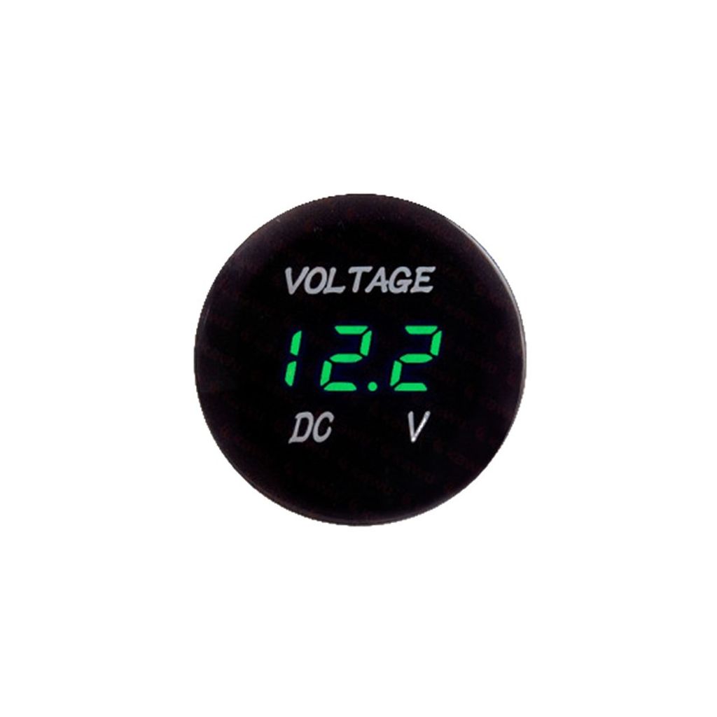 Voltmeter. När tändningen är på indikerar spänningen bilens batterispänningsstatus. Den har en tydlig grön LED-display. Lämplig för installation i de flesta typer av fordon, såsom bil, motorcykel, båt, husvagn, lastbil etc