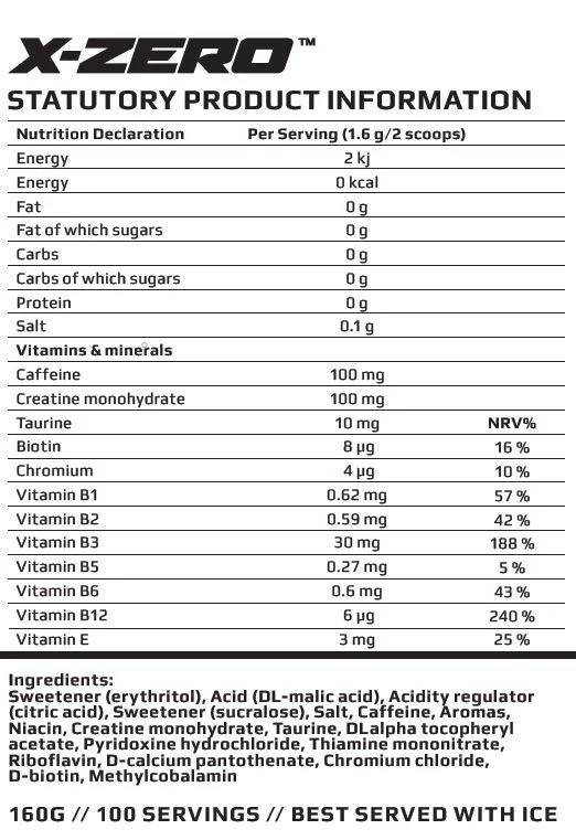 Den stora nyheten? X-Zero Mangostan är den första pulverbaserade energidryck med kreatinmonohydrat. Med 100 mg kreatin per servering får du inte bara en välsmakande dryck, utan också ett tillskott som kan förbättra din träningsprestanda och påskynda muskeluppbyggnad.